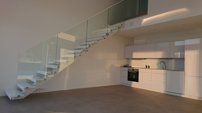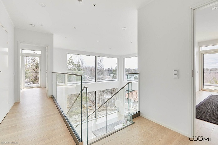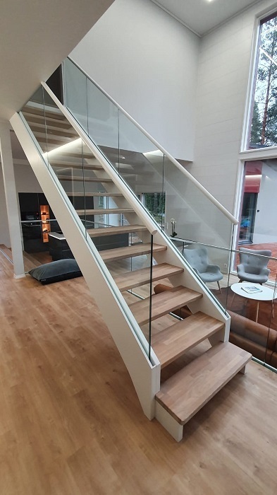 Portaat lasikaiteilla